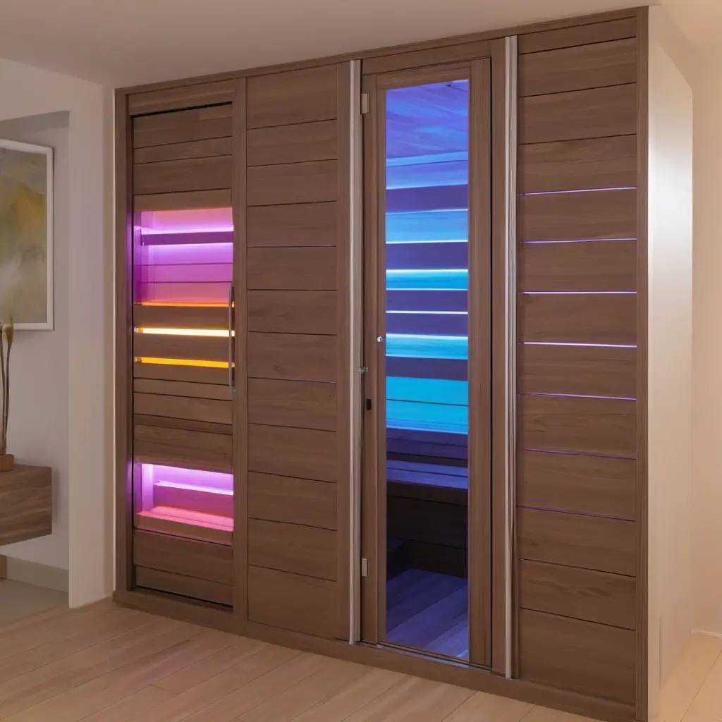 Двери для саун с хромотерапией и цветовыми режимами открывают новые горизонты для создания комфортных, современных и полезных оздоровительных пространств. Используя цветовое освещение, можно значительно усилить эффект традиционной сауны, повышая уровень релаксации и способствуя быстрому восстановлению организма. Технологии не стоят на месте, и уже сегодня такие двери становятся востребованным элементом в СПА и домашних саунах.