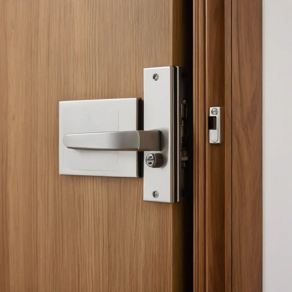 При закрывании двери магнит притягивает пластину с противоположной стороны, надежно фиксируя полотно без необходимости использовать традиционный язычок защелки. Для открытия достаточно легкого нажатия или движения.