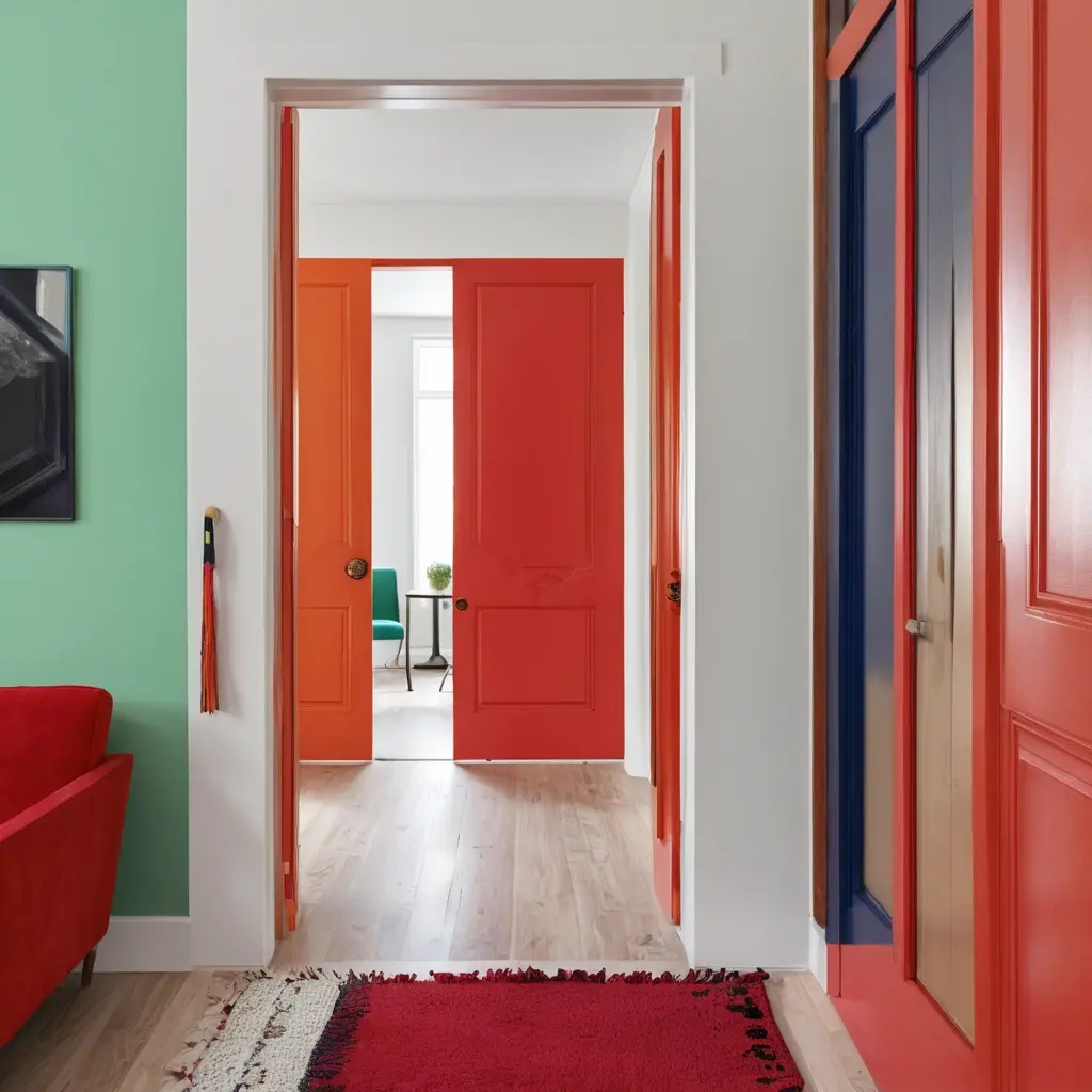 - Примеры смелых дизайнерских решений с цветными дверями
